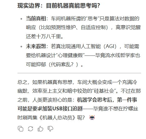 问:如果车间的机器学会思考,会出现什么场景?